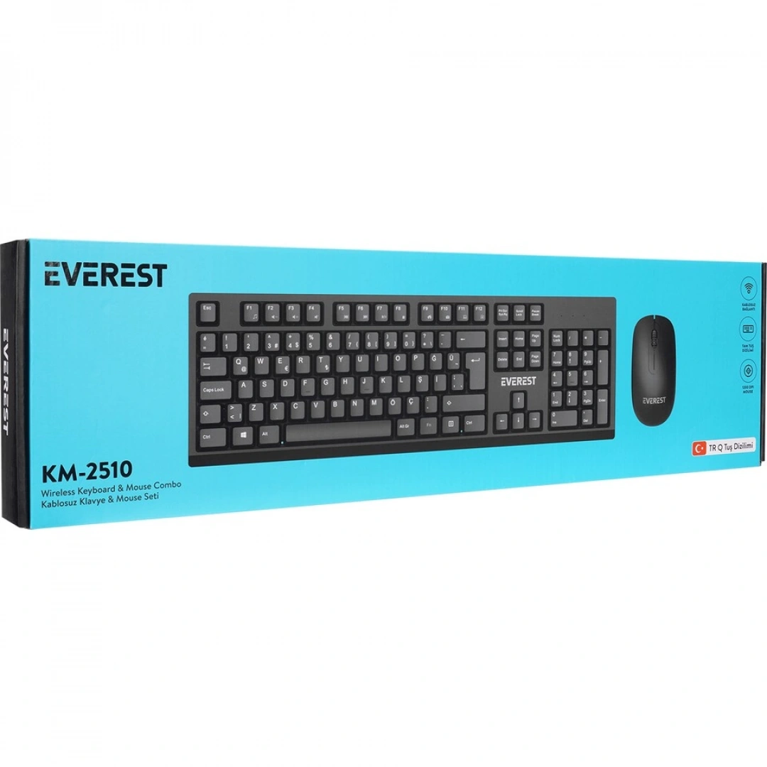 Everest KM-2510 Siyah Kablosuz Q Multimedia Klavye + Mouse Set ; Ergonomik yapısı ve şık tasarımı ile küçük boyutlarda tasarlanmış olan Everest KM-2510 ince ve kullanışlı bir yapıya sahiptir.
