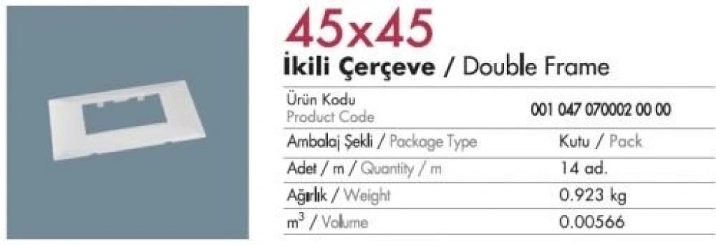 Mutlusan 100x37/50 İçin 45x45 P.M.Seti (İkili)