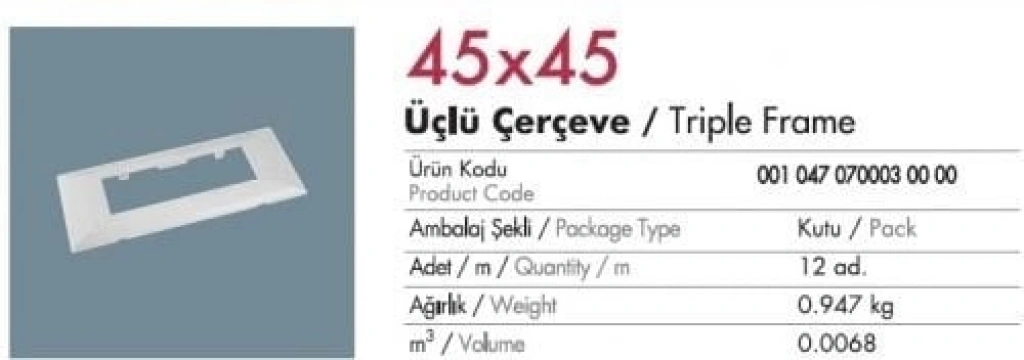 Mutlusan 100x37/50 İçin 45x45 P.M.Seti (Üçlü)