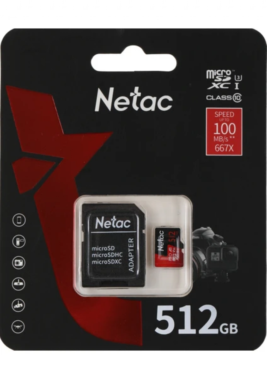 ✔️ 1 x Netac P500 Extreme Pro 512 GB MicroSDXC V30/A1/C10 Hafıza Kartı
