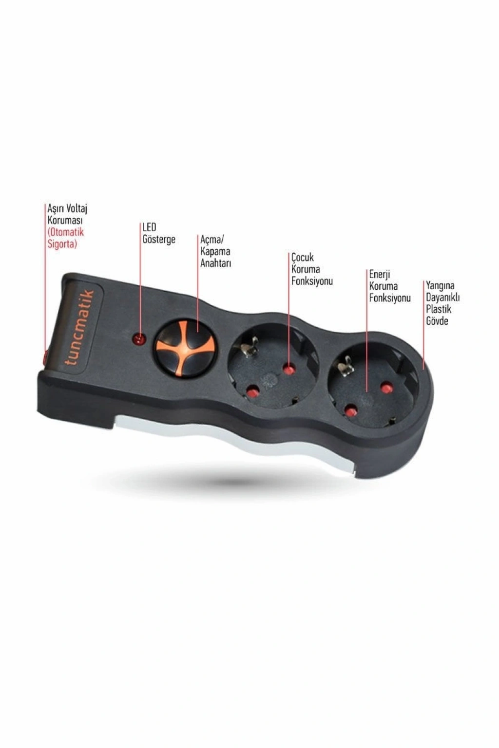 Tunçmatik İkili Siyah Powersurge Akım Korumalı Priz